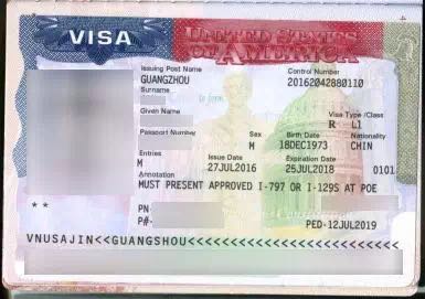 W先生首次申請L1簽證-美簽頁